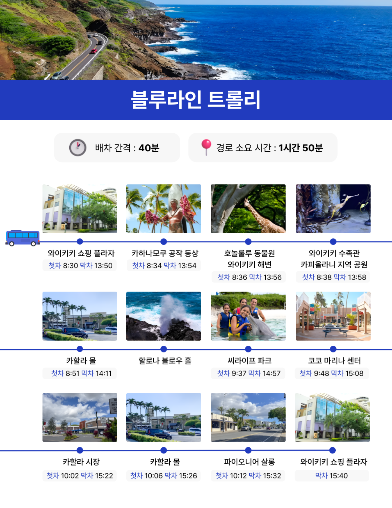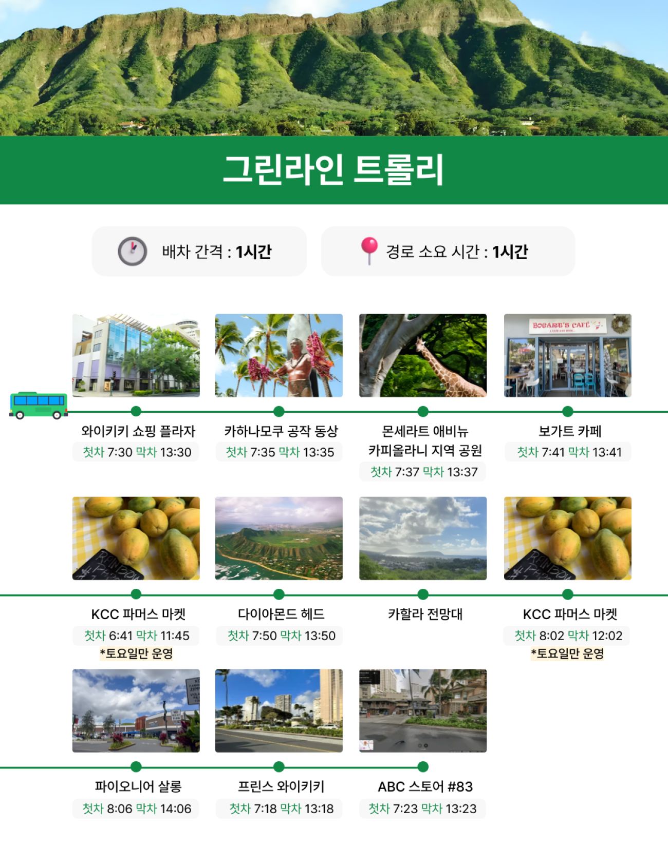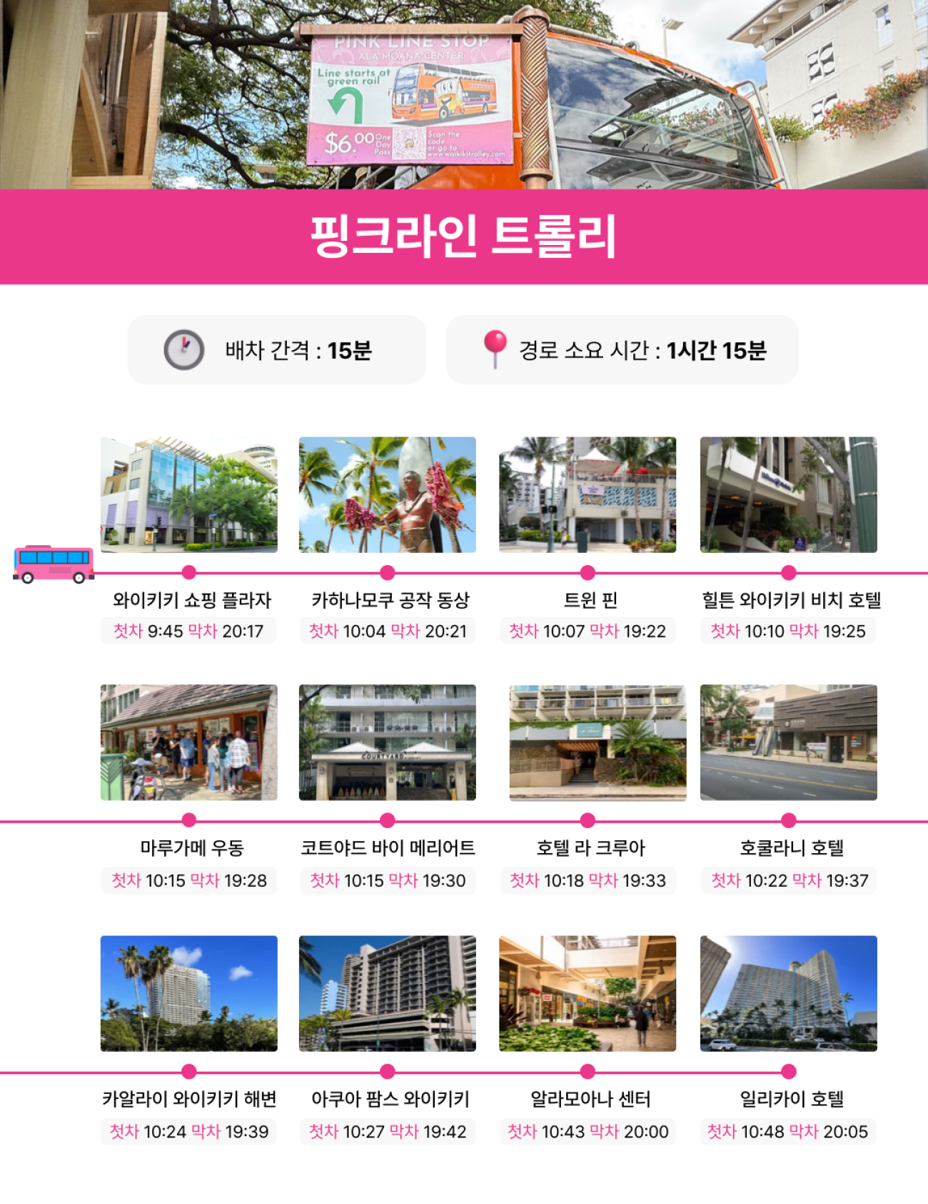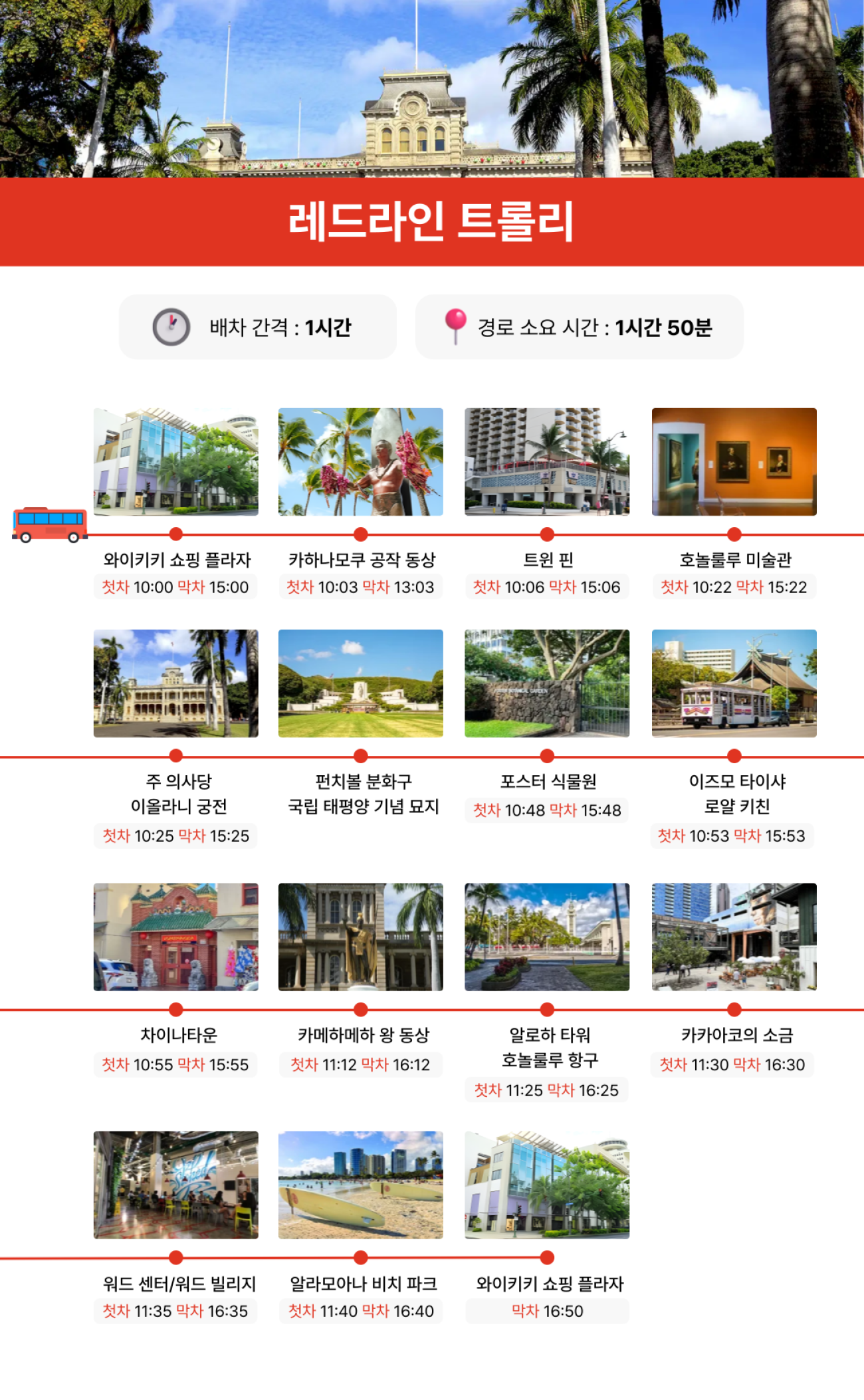 와이키키 트롤리 패스 Schedule