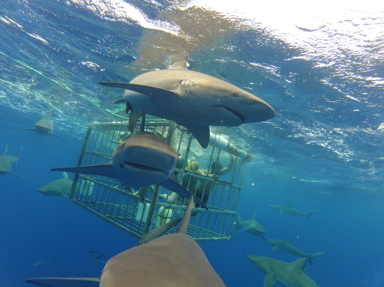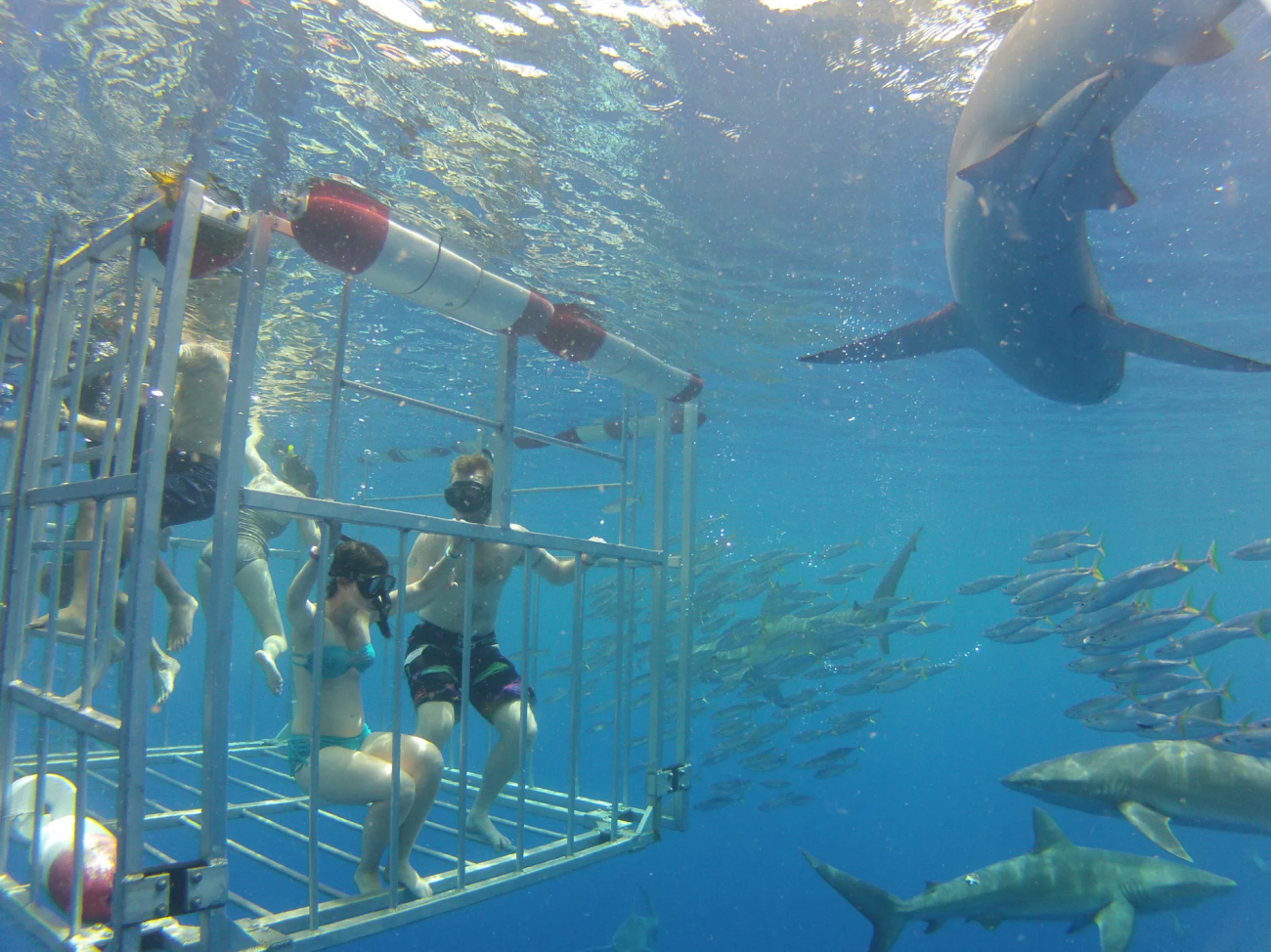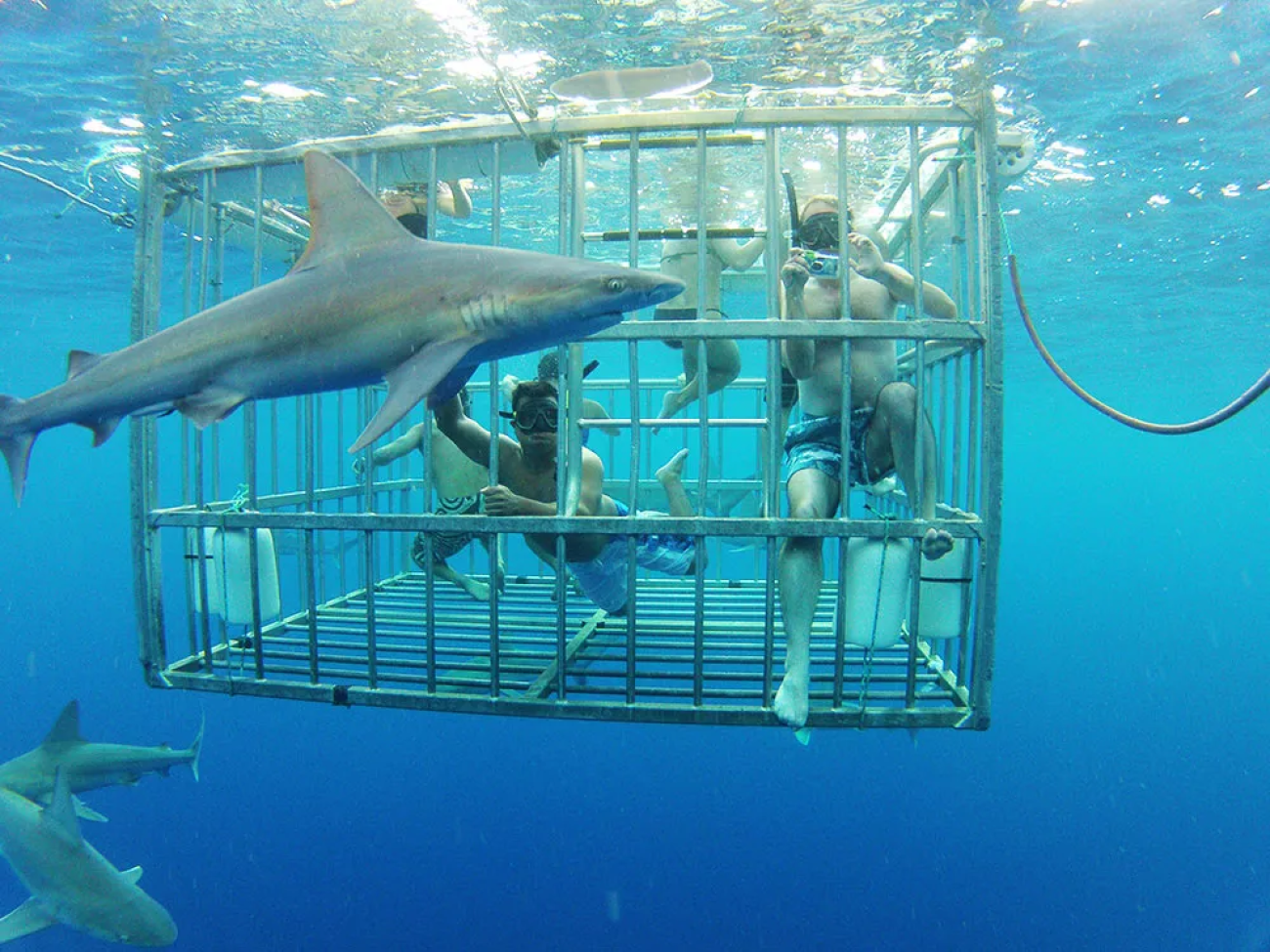1.6m~4.5m 크기의 상어를 안전한 케이지에서 관찰할 수 있습니다.